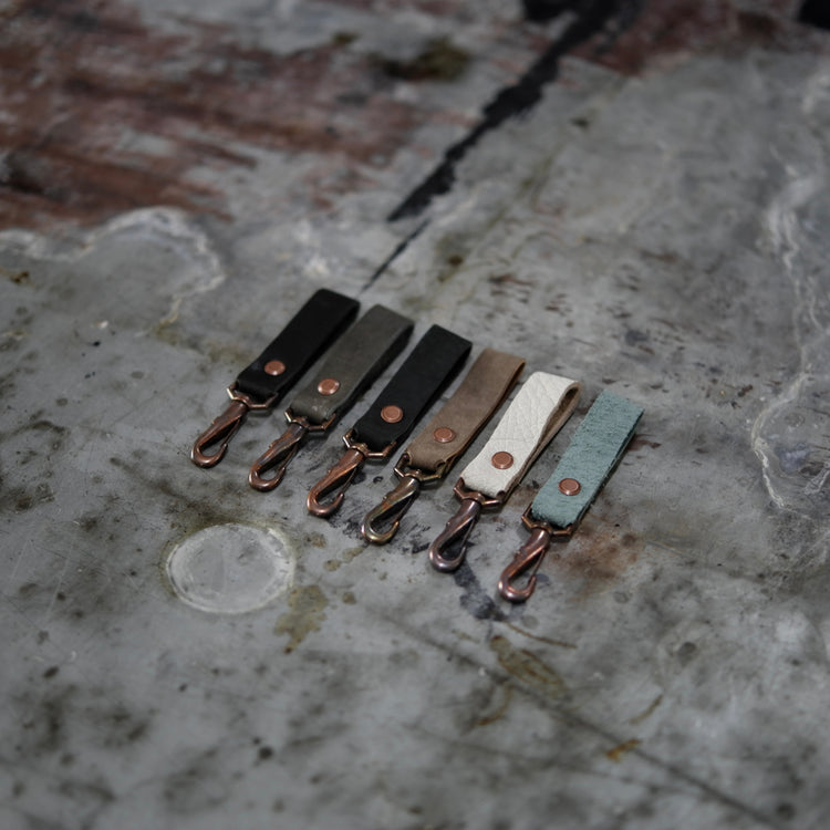 The Key Fob utilizes a vintage military hook which is aged by time, not by hand. This iteration is made from black soft horse hide which matches other accessories in the 7 year anniversary collection. A great way to upgrade your keychain!