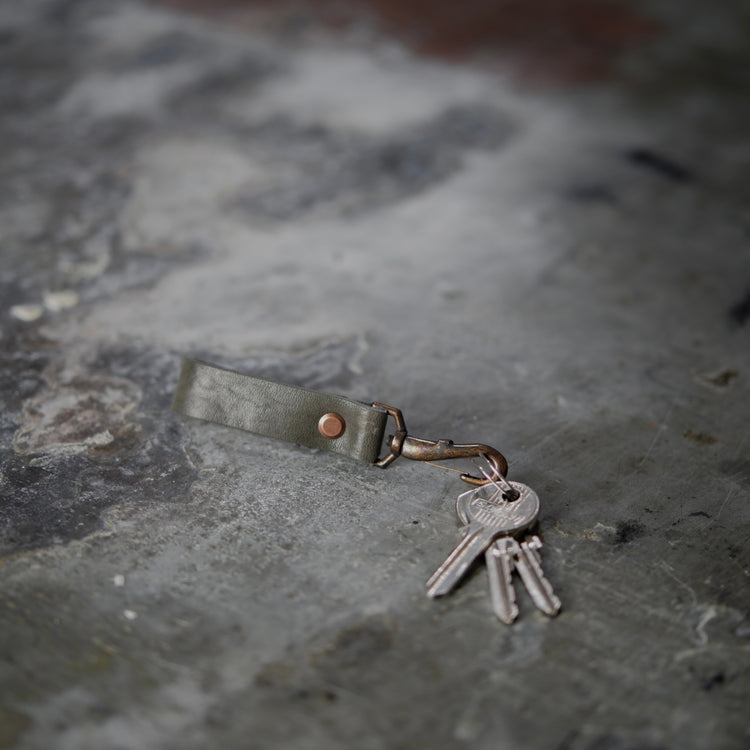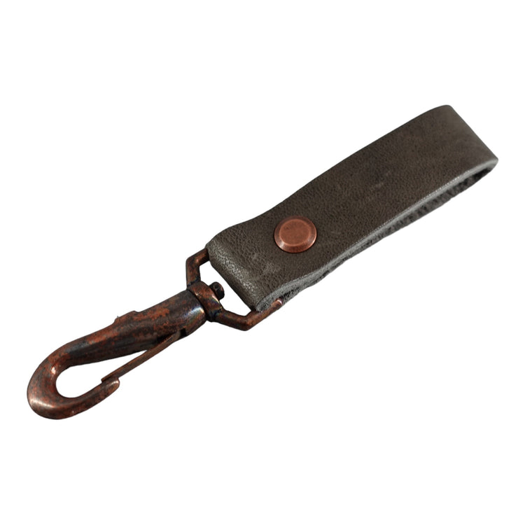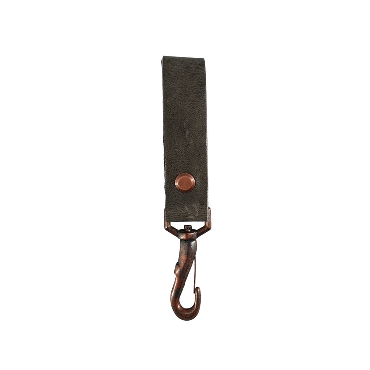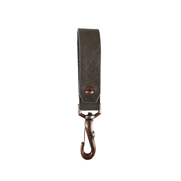 The Key Fob utilizes a vintage military hook which is aged by time, not by hand. This iteration is made from grey soft horse hide which matches other accessories in the 7 year anniversary collection. A great way to upgrade your keychain!