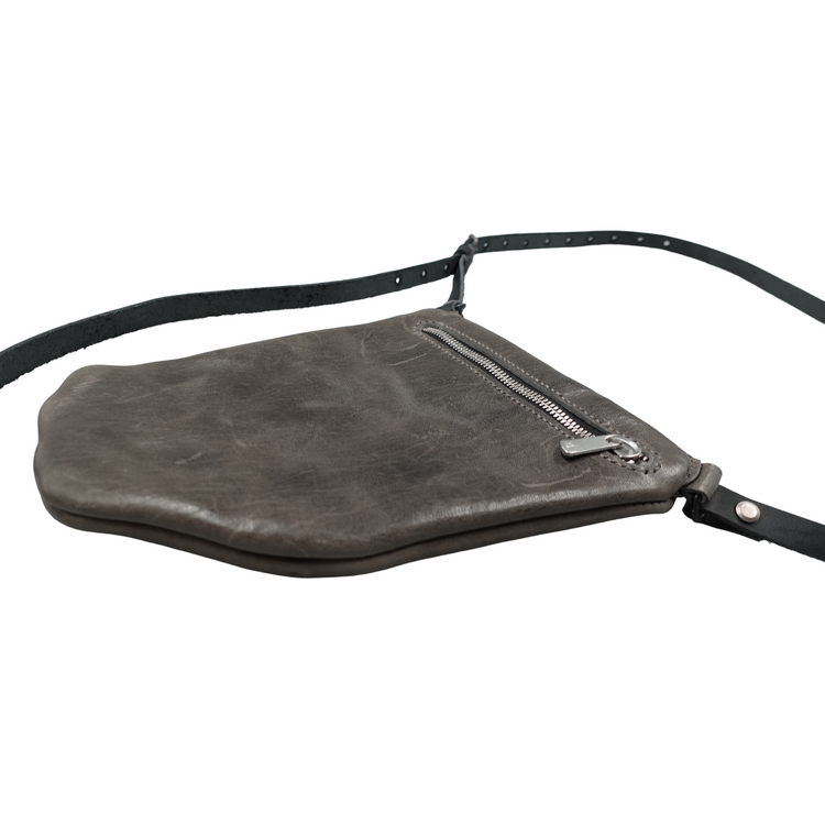 The Holster Bag is the smaller version of the sling bag, providing a super slim profile which makes it easy to wear underneath a jacket or coat. It can be worn in multiple ways, e.g. around the neck or as a belt bag. The perfect bag to keep your daily essentials. This version is made from dark grey soft horse leather and has a metal Excella sipper. The leather will develop character and patina over time which makes it your unique piece!
