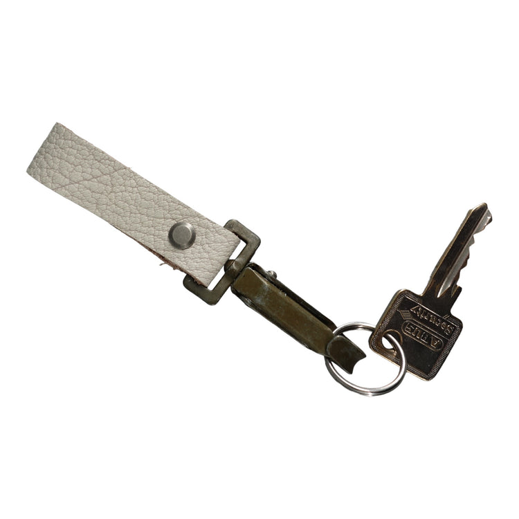 The Key Fob utilizes a vintage military hook which is aged by time, not by hand. This iteration is made from off-white buffalo leather which matches other accessories in the 7 year anniversary collection. A great way to upgrade your keychain!