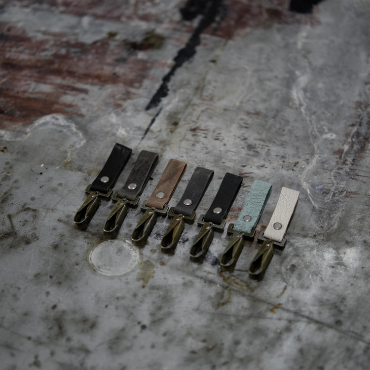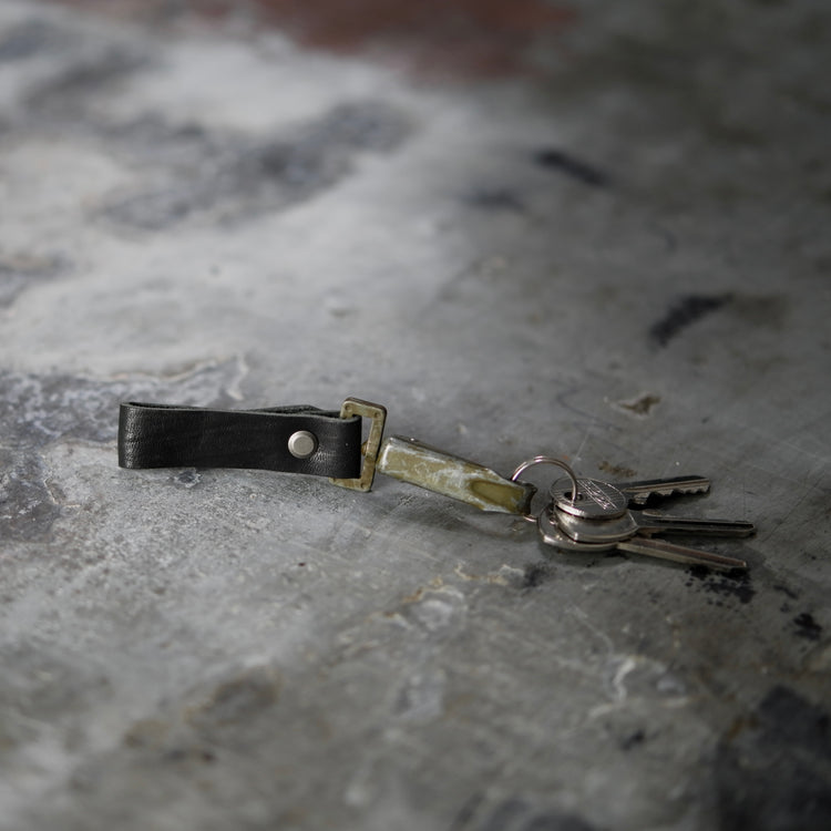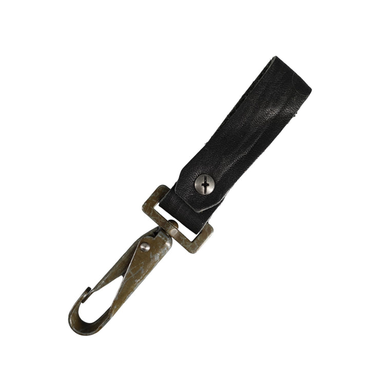 The Key Fob utilizes a vintage military hook which is aged by time, not by hand. This iteration is made from black soft horse leather which matches other accessories in the 7 year anniversary collection. A great way to upgrade your keychain!