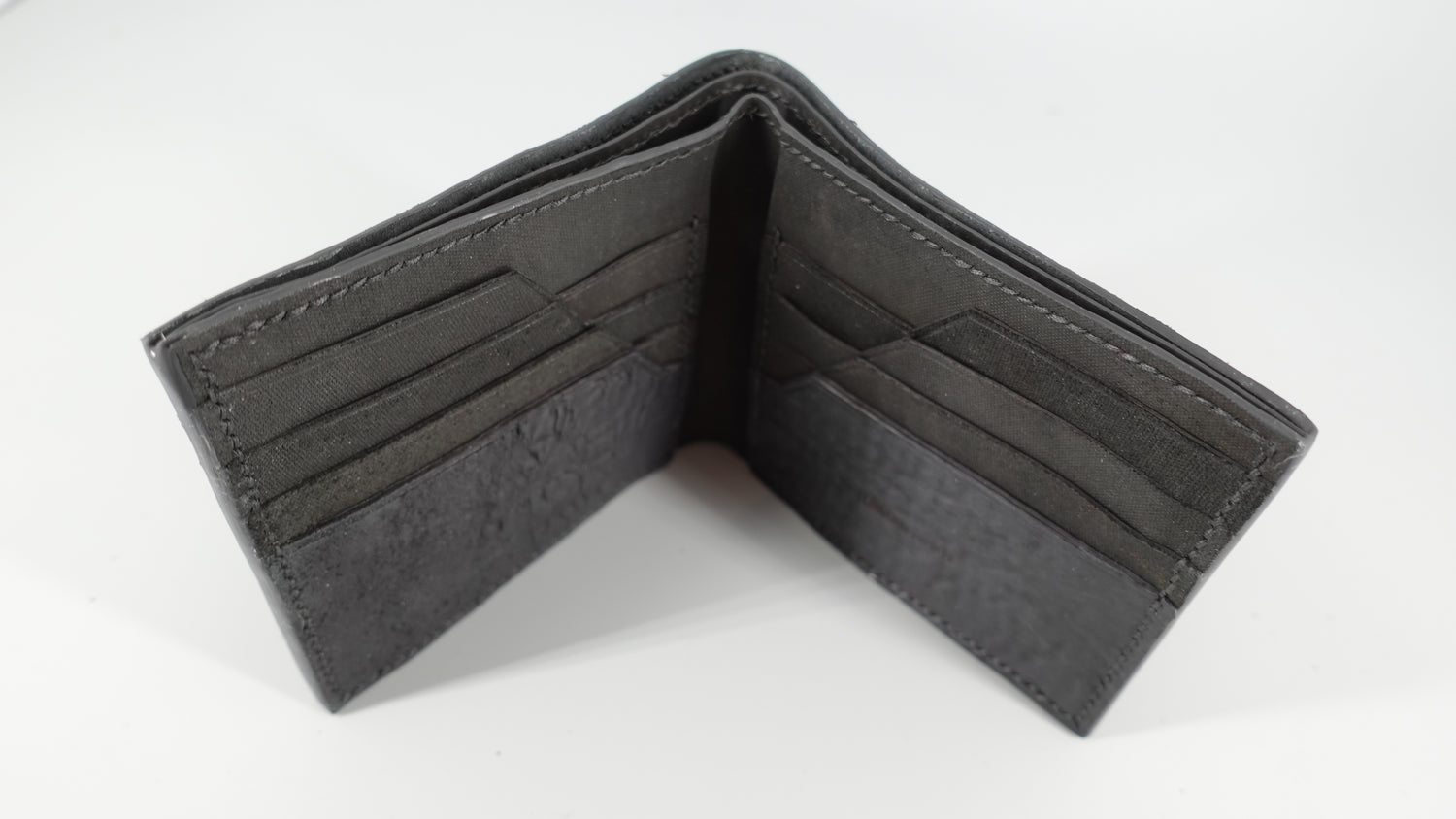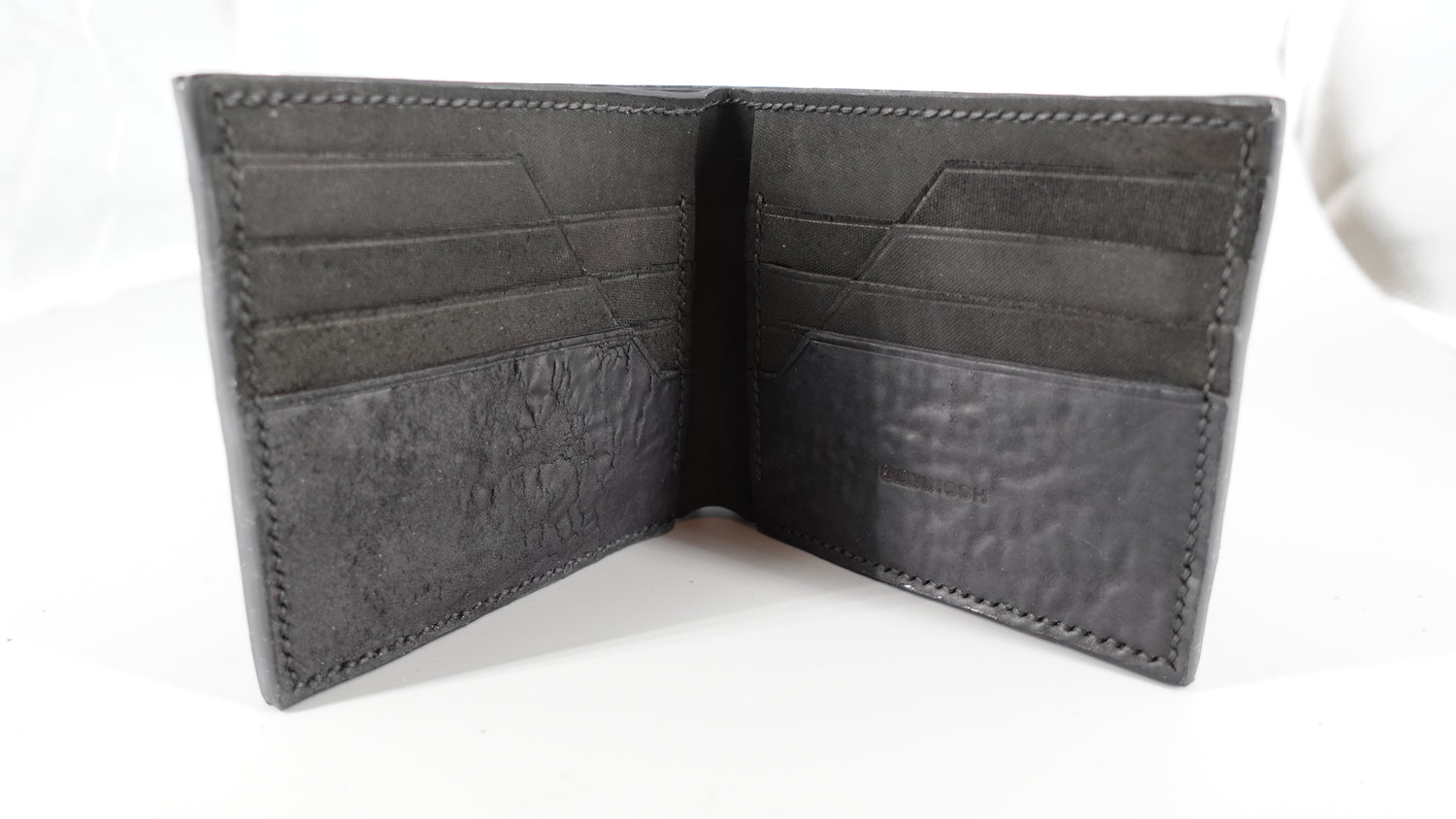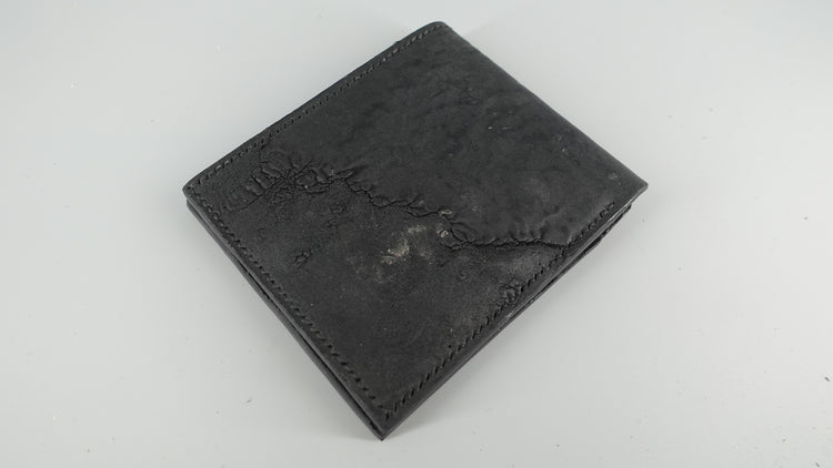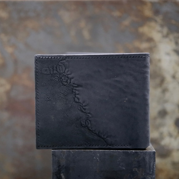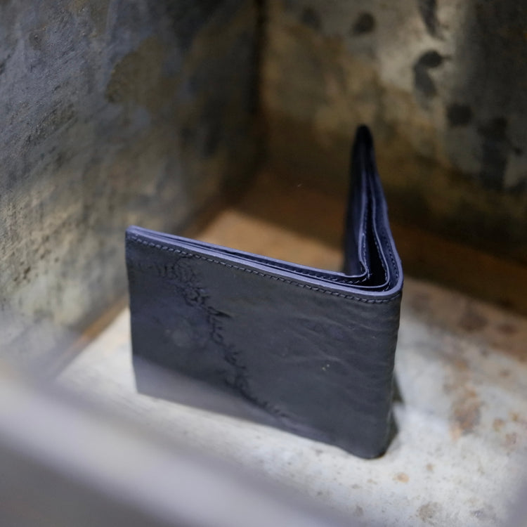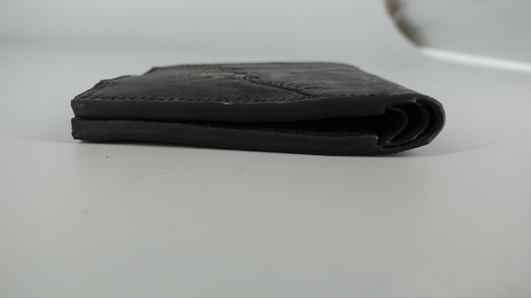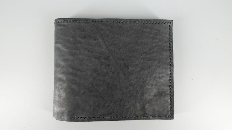 The Binary Wallet offers a lot of storage capacity, with 8 slots for credit cards, 2 hidden compartments, and 2 slots for bills and receipts. This iteration is made from black Culatta (horse butt) which provides a unique texture and feel.