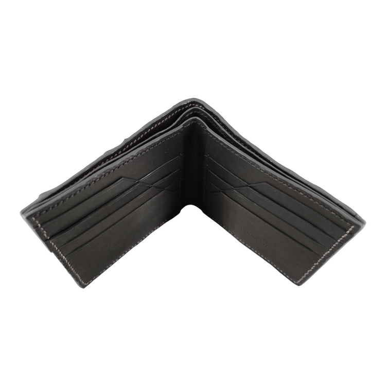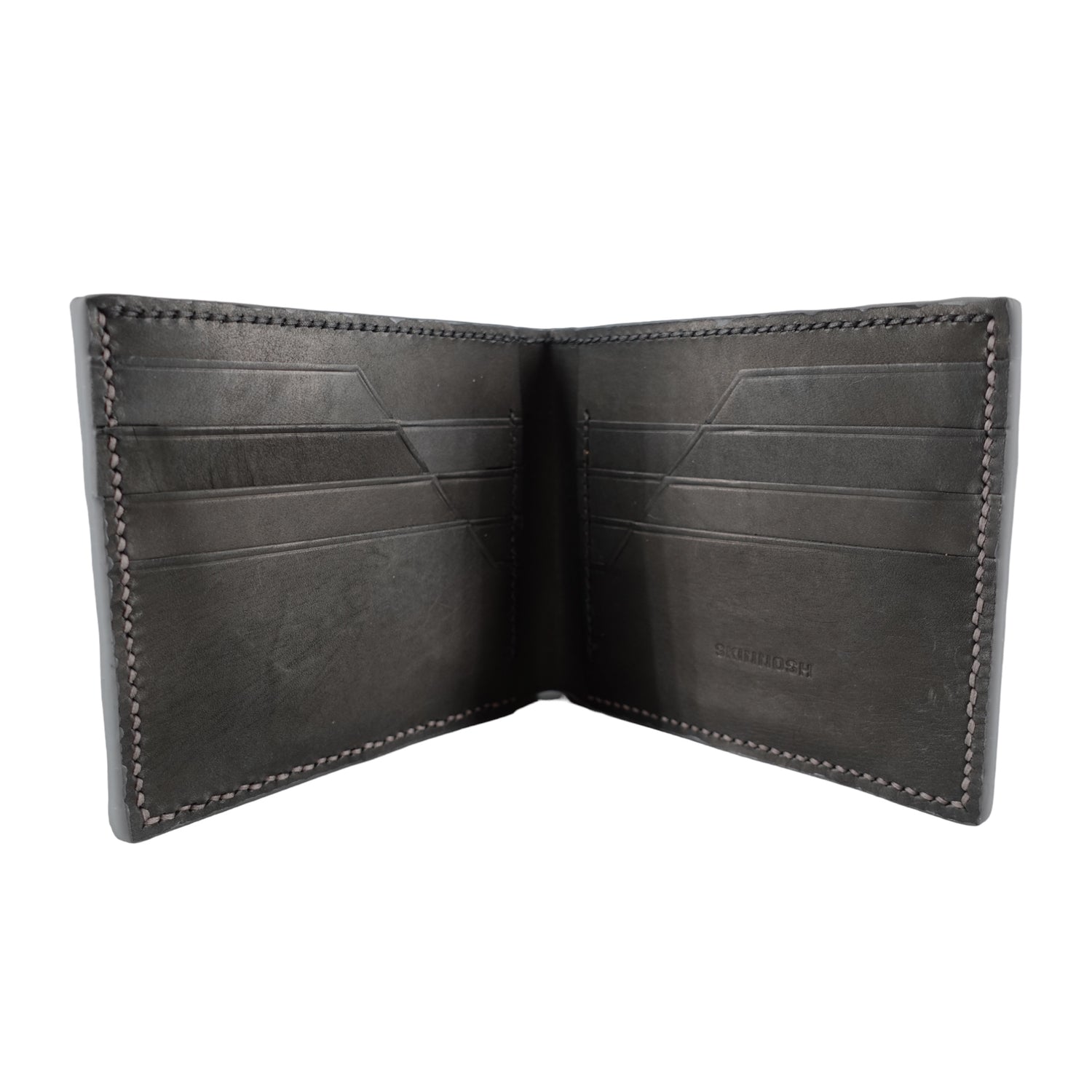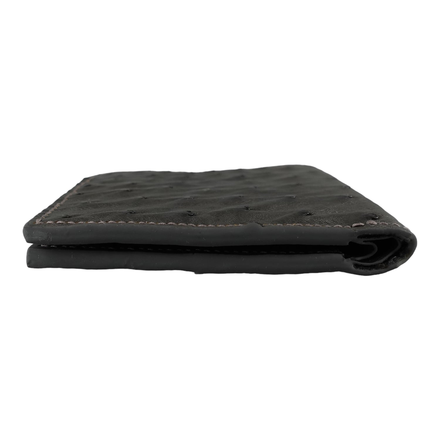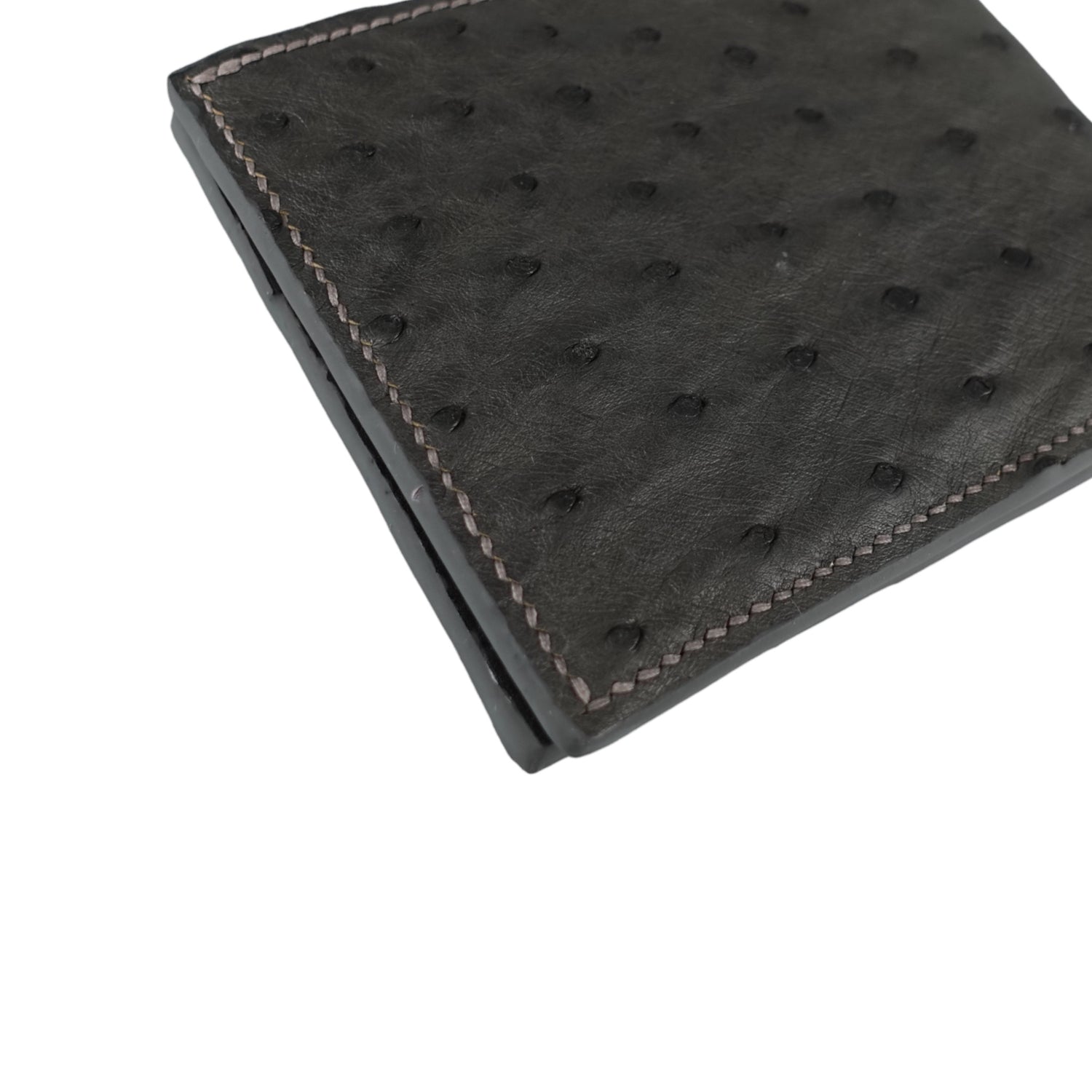 The Binary Wallet offers a lot of storage capacity, with 8 slots for credit cards, 2 hidden compartments, and 2 slots for bills and receipts. This iteration is made from grey genuine ostrich skin which provides a unique texture and feel.