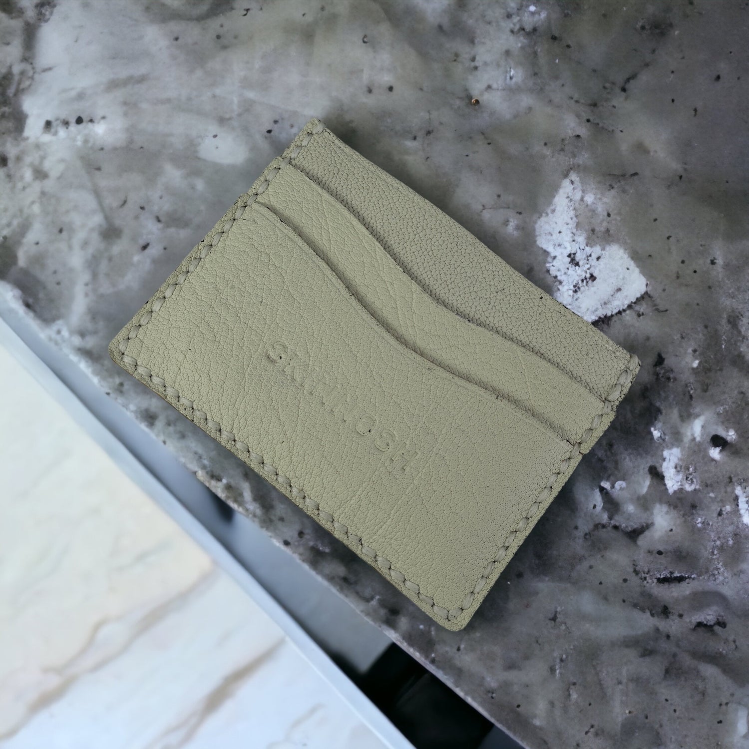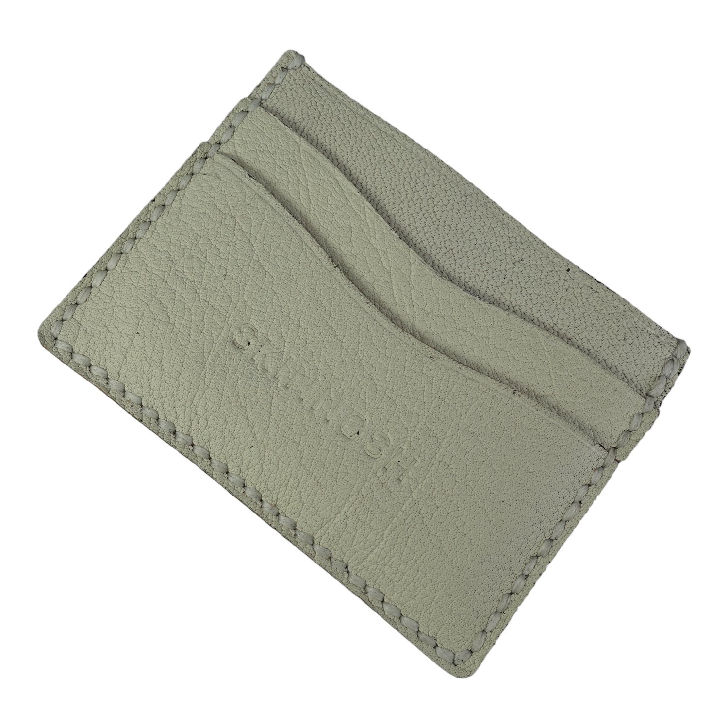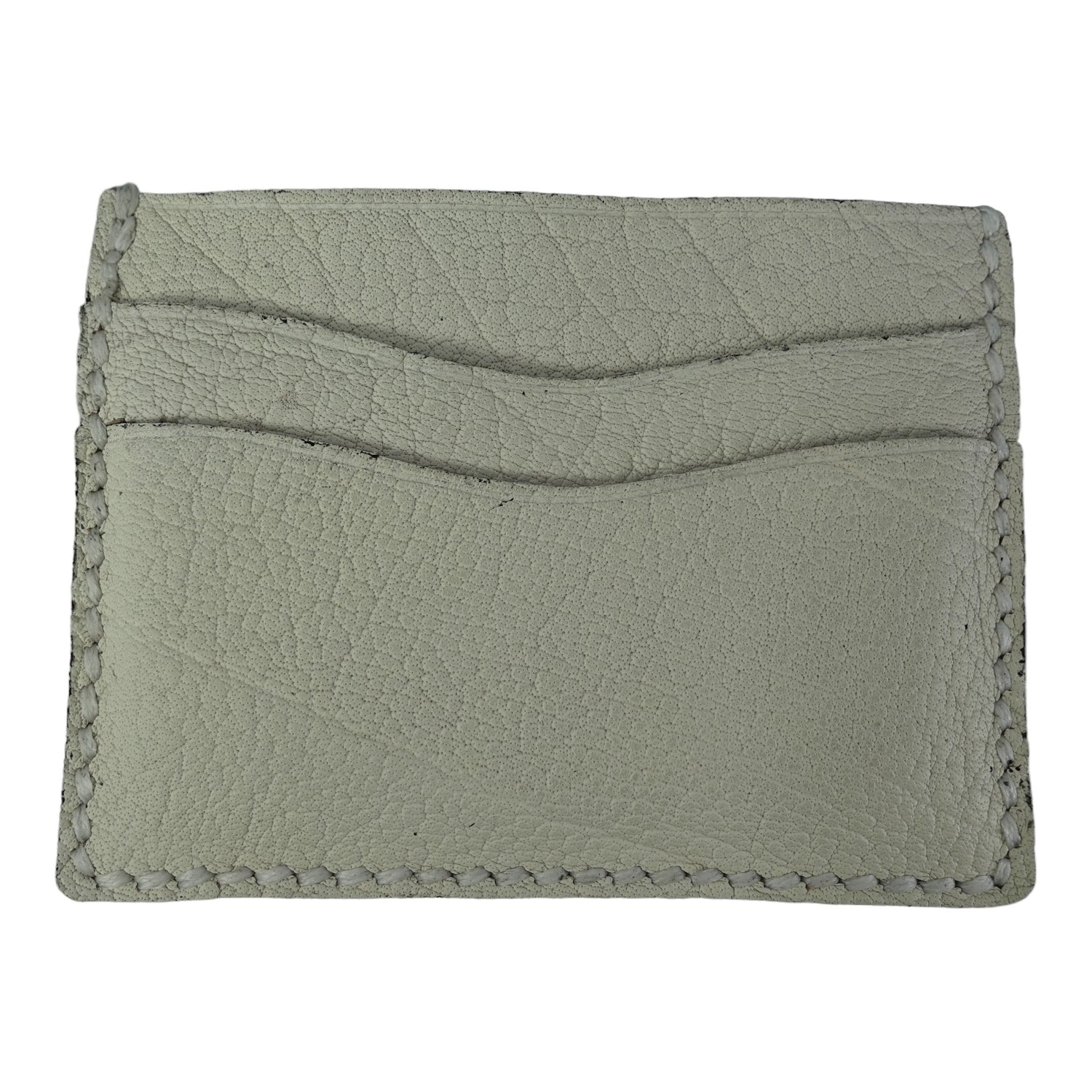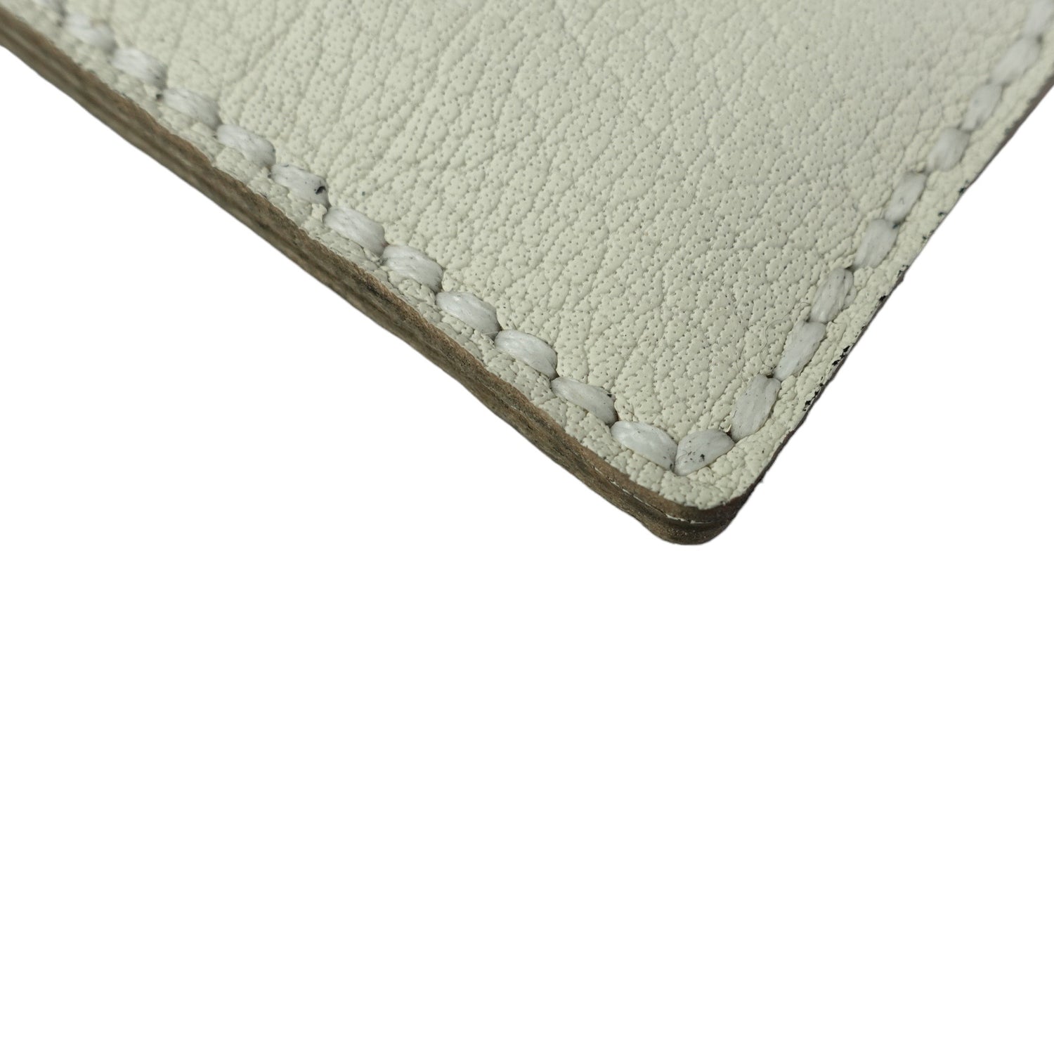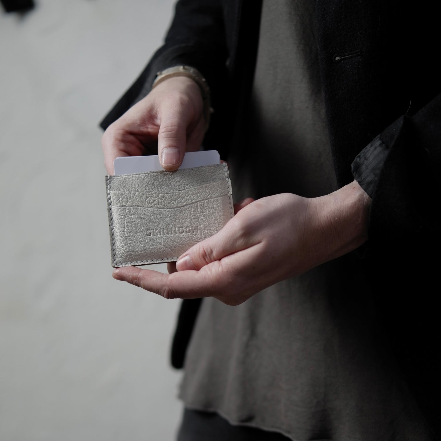 The Brick Cardslot made out of off-white buffalo leather. It has 5 slots for cards and bills but can fit more cards. This leather provides a unique natural texture and is sensational in hand. The edges with the layered leather pieces are inspired by artisanal shoemaking.