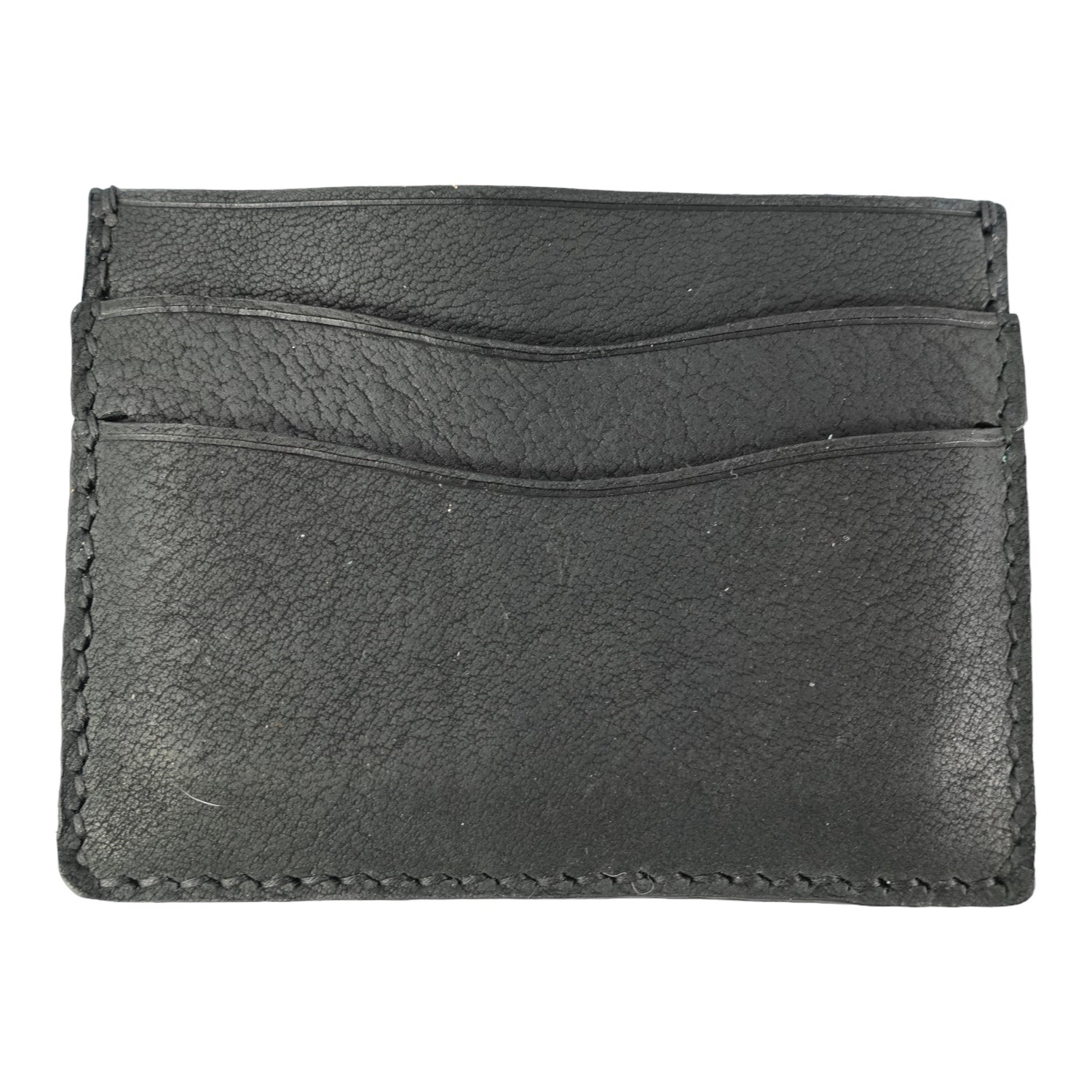 The Brick Cardslot made out of black Culatta (horse). It has 5 slots for cards and bills but can fit more cards. This leather provides a unique natural texture and is sensational in hand. The edges with the layered leather pieces are inspired by artisanal shoemaking.